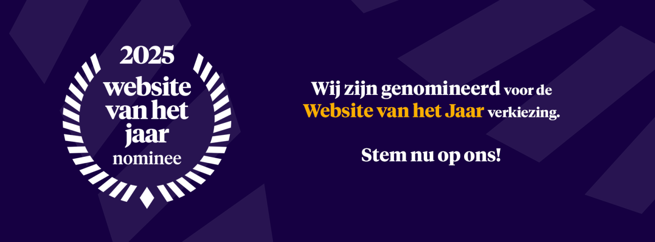 Wij zijn genomineerd voor Website van het Jaar 2025 en we willen heel graag winnen! Stemmen kost slechts een minuutje & dan maak je gelijk kans op prachtige prijzen 🎁