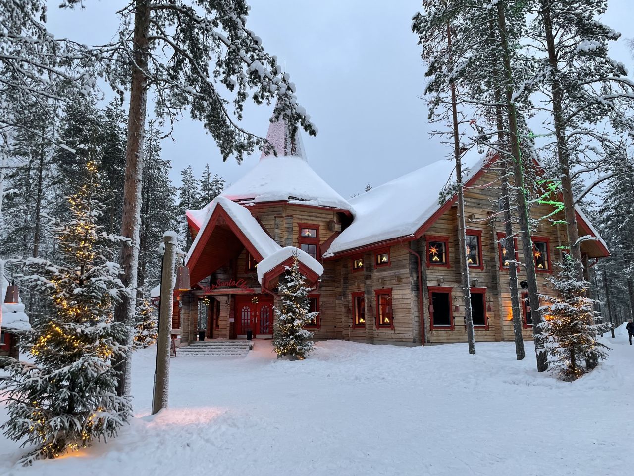 Het hoofdplein is trouwens net een sprookje met het prachtig verlichte kantoor van de Kerstman, de grote sneeuwpop en haar gigantische kerstboom vol met lampjes en vlaggetjes van landen over de hele wereld. Wanneer het sneeuwt, is het nog magischer.