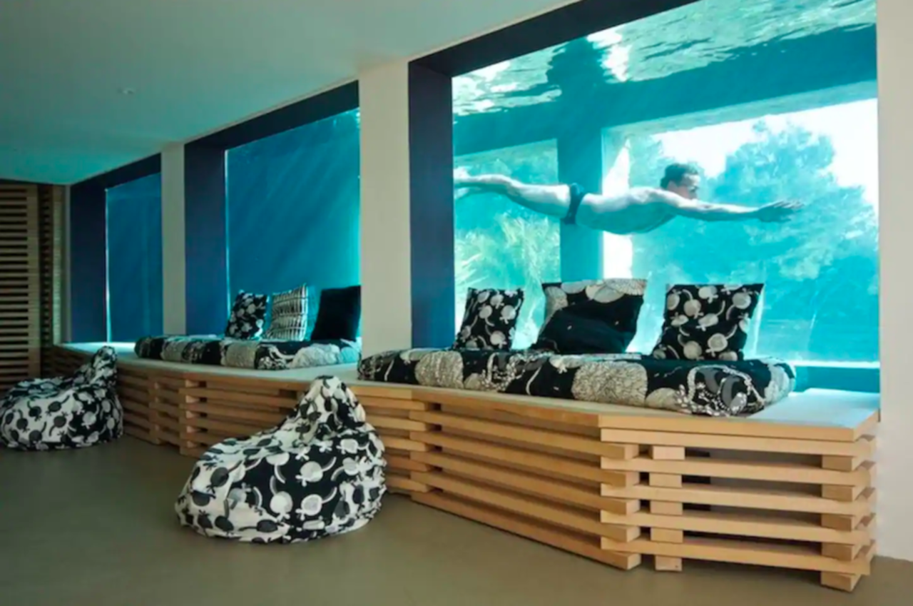 Zwemmers kunnen genieten van het adembenemende uitzicht over de enorme tuin of, als ze kopje-onder gaan, het interieur van het huis.