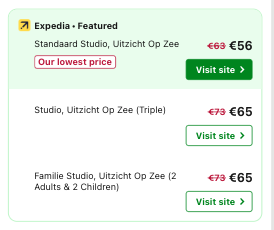 Voor onze voorbeelddatum vonden we de beste prijs via Expedia. Laat je dus daarheen doorsturen.