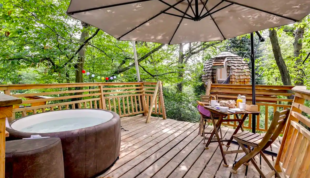 Deze bijzondere boomhut is te vinden in Frankrijk, op ongeveer een uurtje van Parijs. Deze accommodatie hangt tussen de bomen, heeft een eigen terras met jacuzzi, een eigen badkamer. In deze hangende cocon is plek voor maximaal 2 personen. Verder krijgt dit verblijf een 4,9/5 op Airbnb en kan je hier als gast gebruik maken van de sauna, het buitenzwembad, WiFi en gratis parkeren.