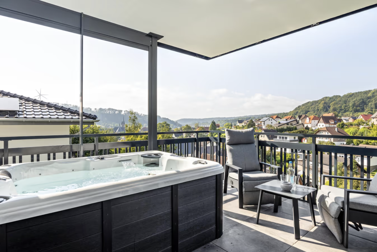Prachtig appartement in Altenbeken met whirlpool op het balkon, privé-sauna en uitzicht over de bergen ⛰️