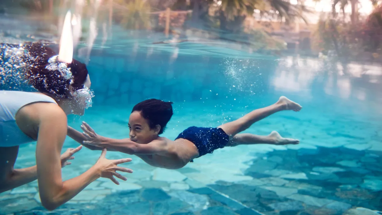 Aqua Mundo, het subtropische zwemparadijs, met glijbanen en andere spectaculaire waterattracties en apart peuter- en kleuterbad.