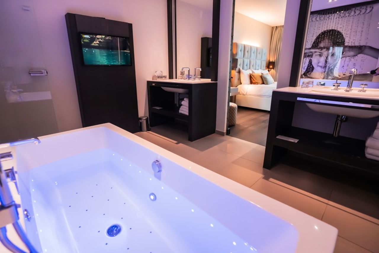Deze kamer ga je eigenlijk niet verlaten, want hier heb je een bubbelbad met kleurentherapie, maar ook een Nespresso koffiemachine, een stoom-douche cabine met rainshower en ga zo maar door.