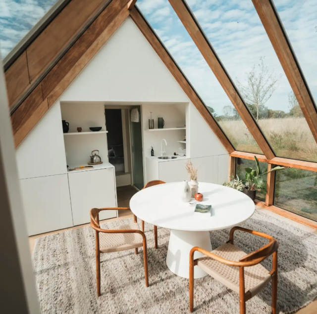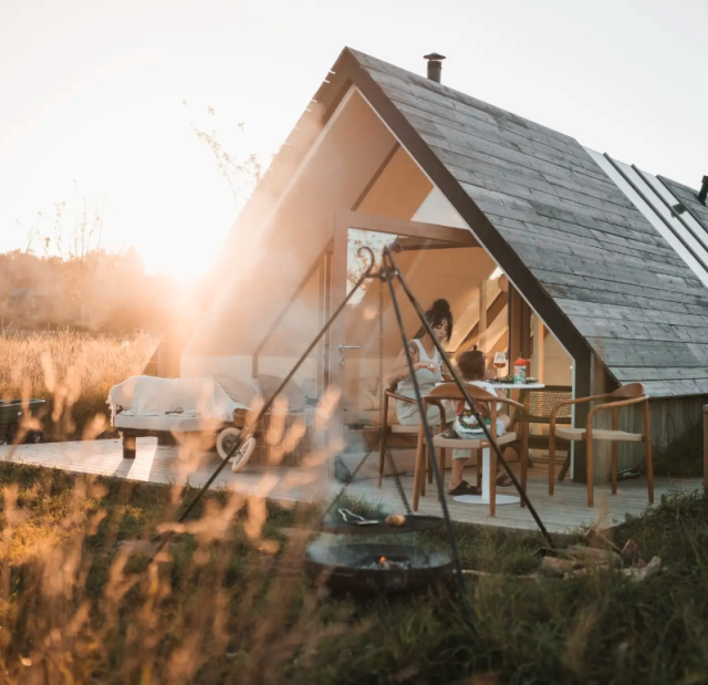 Minimalistisch boerderij-design ontmoet comfort: iedere cabin heeft een volledig uitgerust keukentje, houtkachel, douche, toilet en slaapruimte voor tot 4 personen. Tot slot is er zelfs een BBQ buiten.