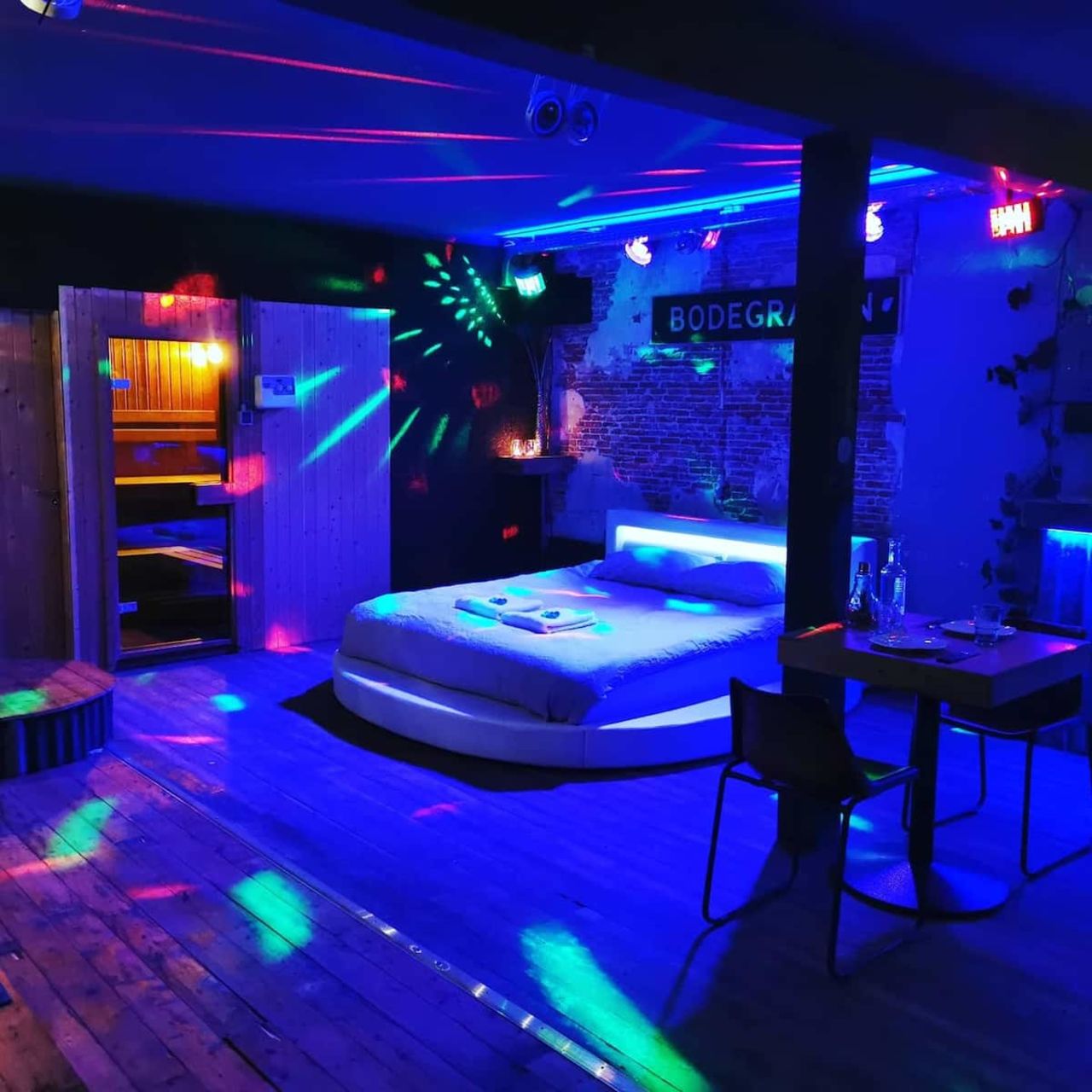 Bijzondere overnachting in een feestzaal met discolampen & danspaal! Unieke suite voor €117 p.p. met sauna!