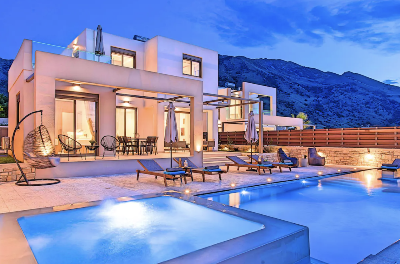 Beschikbaar in de meivakantie! 💖 10-persoons villa op Kreta met een adembenemend uitzicht 🌟 Inclusief verwarmd zwembad & jacuzzi