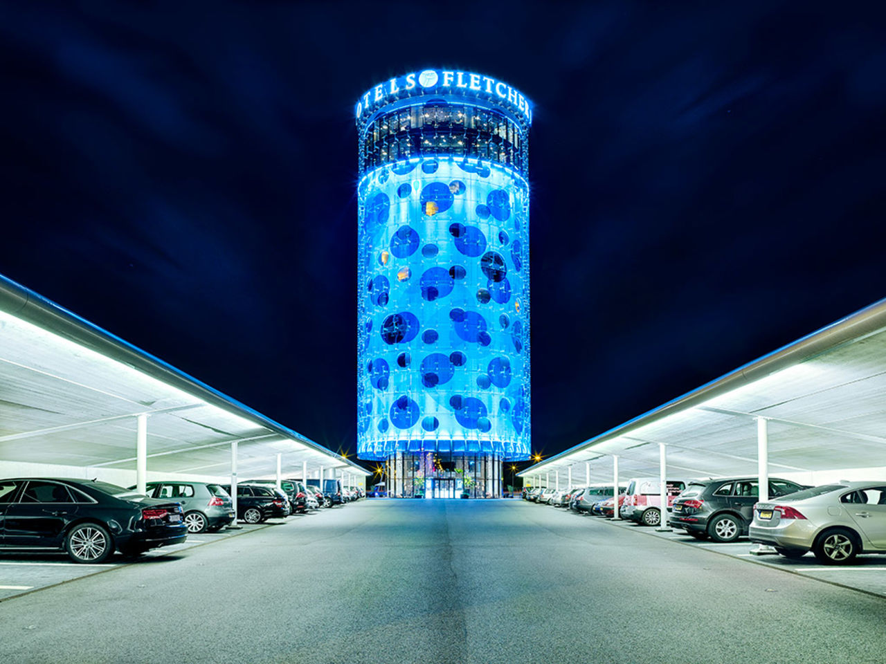 We hebben wel een parel van een hotel gevonden. Dit Fletcher Hotel Amsterdam heeft een ongekende uitstraling dat vanaf ver te bewonderen is. Je kunt het futuristisch of designer-uitstraling noemen, maar mooi is het zeker!
