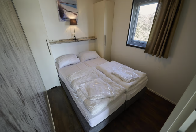 Dit leuke huisje heeft 2 slaapkamers, een keuken, een zithoek, een badkamer, een buitenterras en uitzicht op het Veluwemeer.