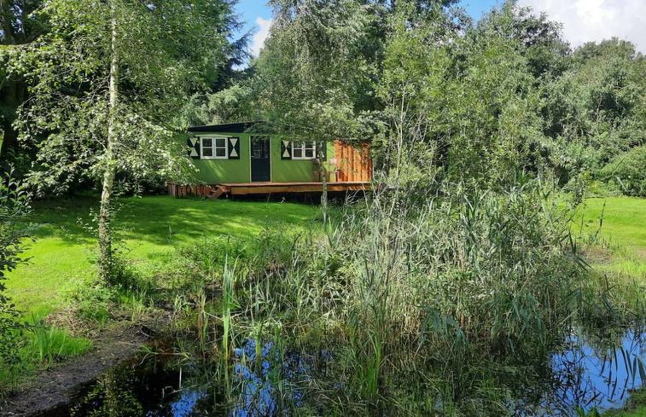 Bij deze unieke accommodatie verblijf je in een groen boshuisje in de Achterhoek. Dit knusse huisje heeft plek voor maximaal 2 personen en beschikt over een comfortabele hoekbank/slaapbank in de woonkamer, een eethoekje met uitzicht over de vijver en het weiland, een slaapnis (160x200), een goed uitgeruste keuken en een toilet. Verder is er buiten een terras, een hottub en een buitendouche (warm water).