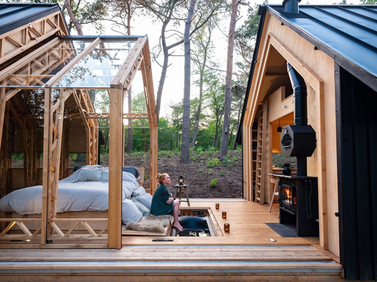 😎 Bij lekker weer zet je de cabin volledig open en slaap je onder de sterren. Maar de grootste verrassing is het ligbad, verwerkt in de vloer. Mooier dan dit wordt het niet. En dit pareltje vind je gewoon in Nederland. 🇳🇱