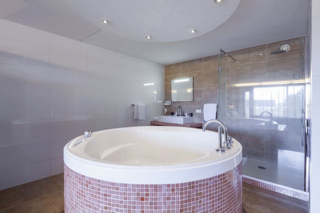 Je hebt aardig wat faciliteiten zoals gratis Wi-Fi, airconditioning, kingsize bed, apart toilet, koelkastje, telefoon, haardroger en kluisje, TV, een prachtige open badkamer, Tweepersoons jacuzzi, die ook nog eens rond is, een balkon en koffie- en theefaciliteiten.