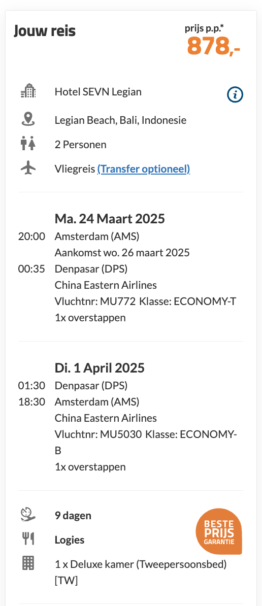 Dat is helemaal niet duur voor zo'n top vakantie. Wees er snel bij!