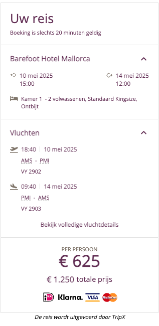In de screenshots hieronder zie je een voorbeeldboeking. Klik op de screenshots om meer data te vinden.