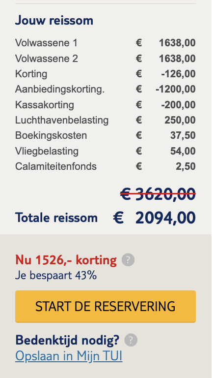 Prijs = €1504,50 / 2 personen = €752,25 per persoon