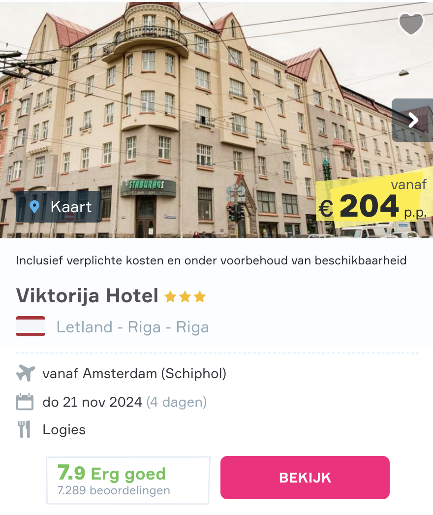 Zo boek je al een stedentripje naar bijvoorbeeld Riga voor slechts €204 p.p. Verder hebben we ook leuke deals gevonden naar Barcelona, Marrakech, Edinburgh en Lissabon.