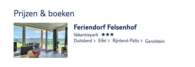 Een lang weekend in de natuur met het hele gezin of met een grote groep vrienden? Dat klinkt als muziek in de uren! En op relatief korte afstand van de grens met Nederland ligt het fijne kleinschalige en autovrije vakantiepark Felsenhof. Je wordt hier welkom geheten door de Nederlandse Karin en Martin die je met plezier en gastvrijheid zullen ontvangen. De kinderen zullen zich als een vis in het water voelen op het Ferienhof. Er is een kinderzwembad, minigolfbaan en tijdens de zomer- en meivakanties wordt er ook kinderanimatie georganiseerd!