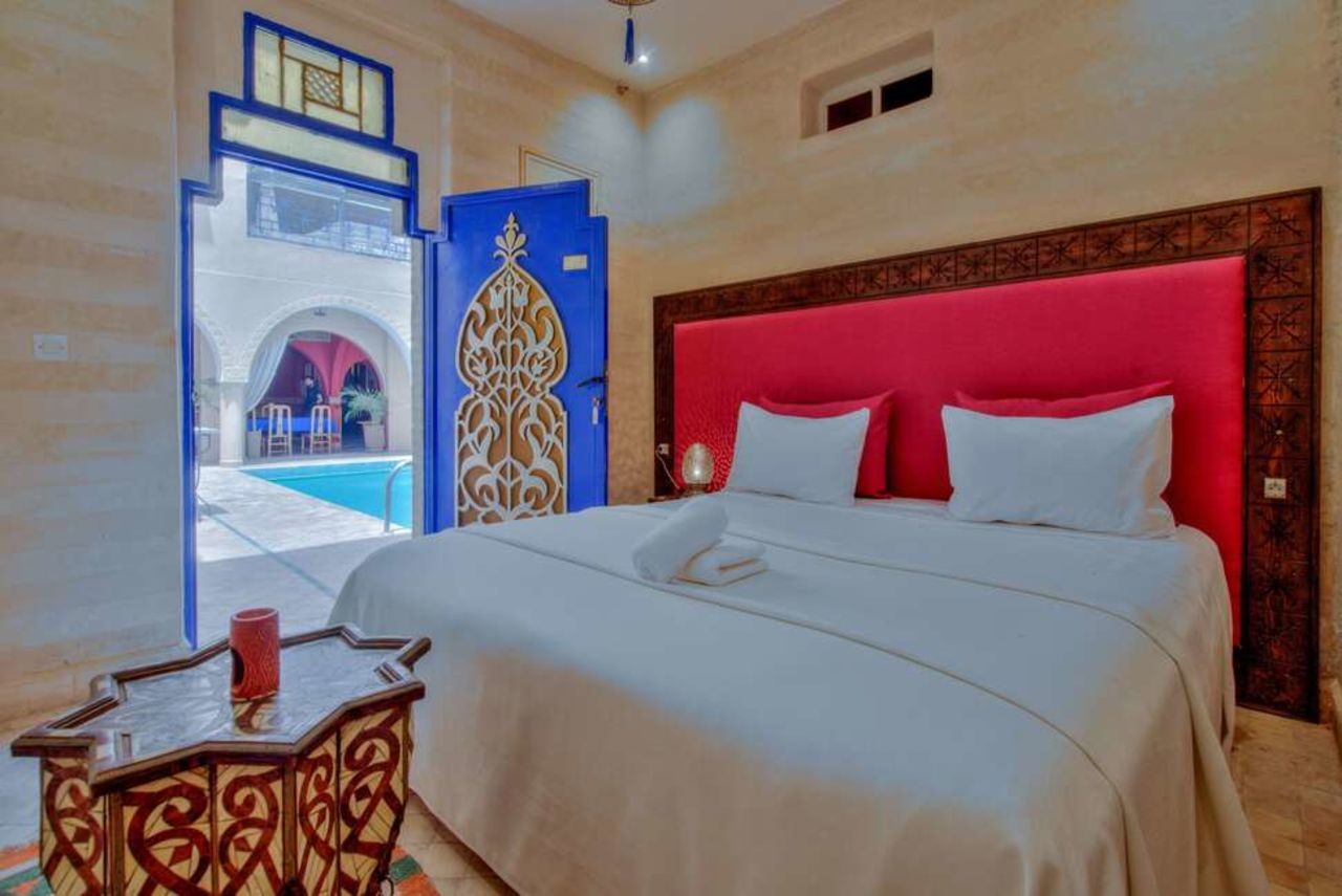 😍 Stap binnen in de sprookjeswereld van Marrakesh bij Riad La Villa Bleue. Deze stijlvolle riad met kleurrijke kamers, een prachtige binnenplaats met zwembad 💦 en een sfeervol restaurant is een plaatje om te zien. Perfect voor een luxe ciitytrip met Marokkaanse flair.