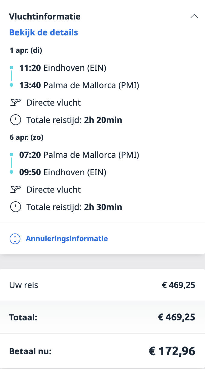 Bekijk de details hieronder en boek jouw vakantie naar Mallorca.