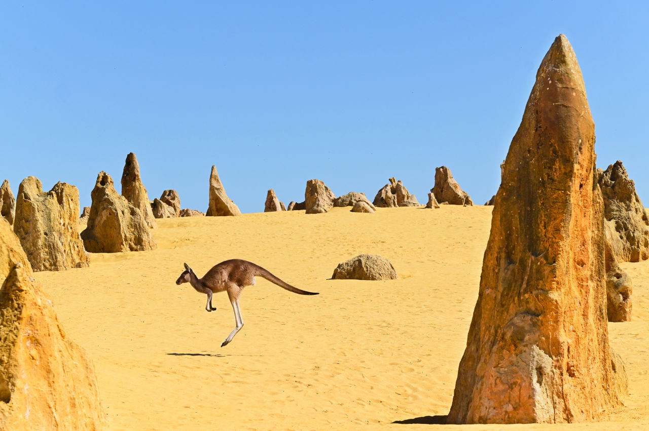 West-Australië wacht met hagelwitte stranden, helderblauw water en indrukwekkende outback. Start in Perth, spring in je camper en ontdek Rottnest Island, de Pinnacles en het roze Hutt Lagoon. In Shark Bay hike je naar Nature’s Window en zie je dolfijnen en pelikanen. Voeg daar walvishaaien, rode kliffen en machtige canyons aan toe, en je roadtrip Down Under wordt één groot avontuur! 🌏✨