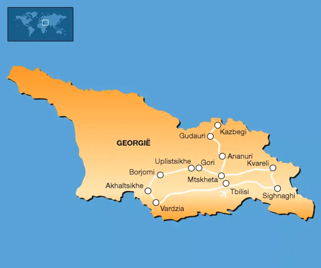 Je begint in Tbilisi, een mix van hypermoderne gebouwen en een kleurrijk historisch centrum. Na een verkenning van de hoogtepunten voert de route naar Kakheti, dé wijnregio van het land. Geniet van een Georgische lunch en proef de authentiek geproduceerde wijn! Vervolgens verken je de oude hoofdstad Mtskheta en ga je via de oude Military Highway de bergen in, op weg naar Kazbegi. Via een prachtig berglandschap en langs schitterend gelegen forten komen we bij de meest fotogenieke plek van het land: de Gergeti Drievuldigheidskerk. Via het oud-Russische kuuroord Borjomi reis je af naar Akhaltsikhe en grotstad Vardzia.