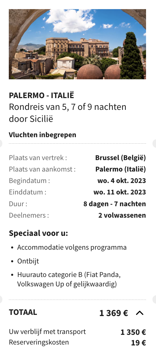 Bekijk de details hieronder en boek snel jouw tripje naar Sicilië!