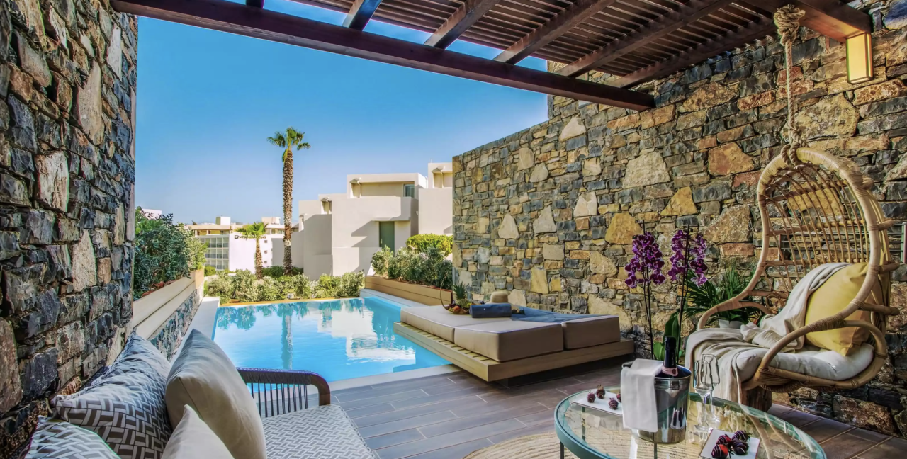 Je verblijft in het Wyndham Mirabello Beach & Village, een ultramodern resort waar jij je thuis gaat voelen. Hier wordt alles uit de kast gehaald om jou een ongekende vakantie te bezorgen. Dit is een vijfsterrenresort dat geweldige beoordelingen krijgt op Tripadvisor (4,5/5). Hier kom je helemaal tot rust, of dat nu betekent dat je op een privéstrand ligt of de hele dag spendeert in de wellness. Je verblijft hier in een Bungalow Junior Suite, maar tegen meerprijs heb je hier ook een eigen zwembad.