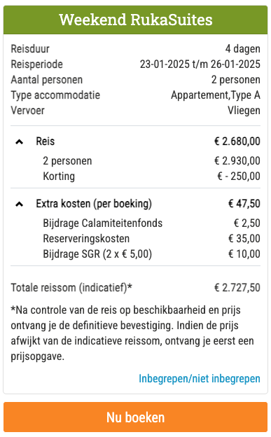 Het laagste bedrag is op basis van 4 personen. We geven hieronder een voorbeeldoptie voor 2 personen.