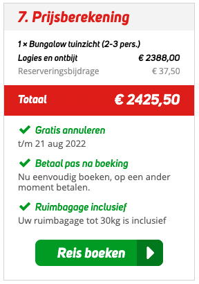 Prijs = €2425,50 / 2 personen = €1212,75 per persoon